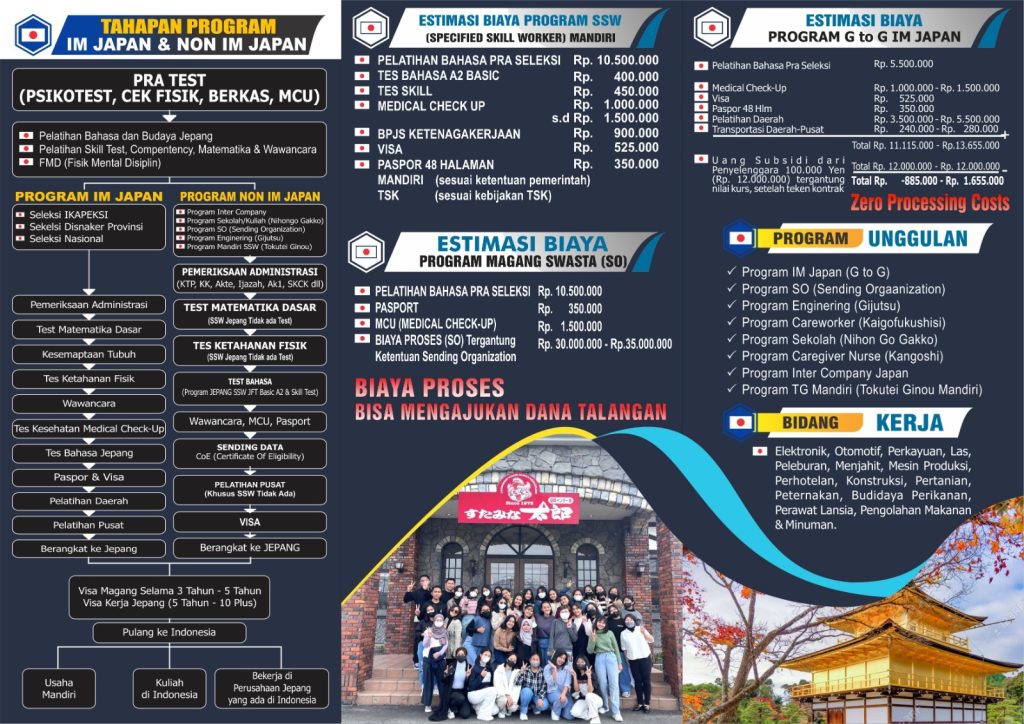 Program pemagangan ke Jepang merupakan hasil kerjasama antara Kementerian Ketenagakerjaan Republik Indonesia dengan International Manpower Development Organization, Jepang (IM Japan). Program ini dimulai pada tahun 1993, dan hingga saat ini telah menghasilkan lebih dari 45.000 alumni.